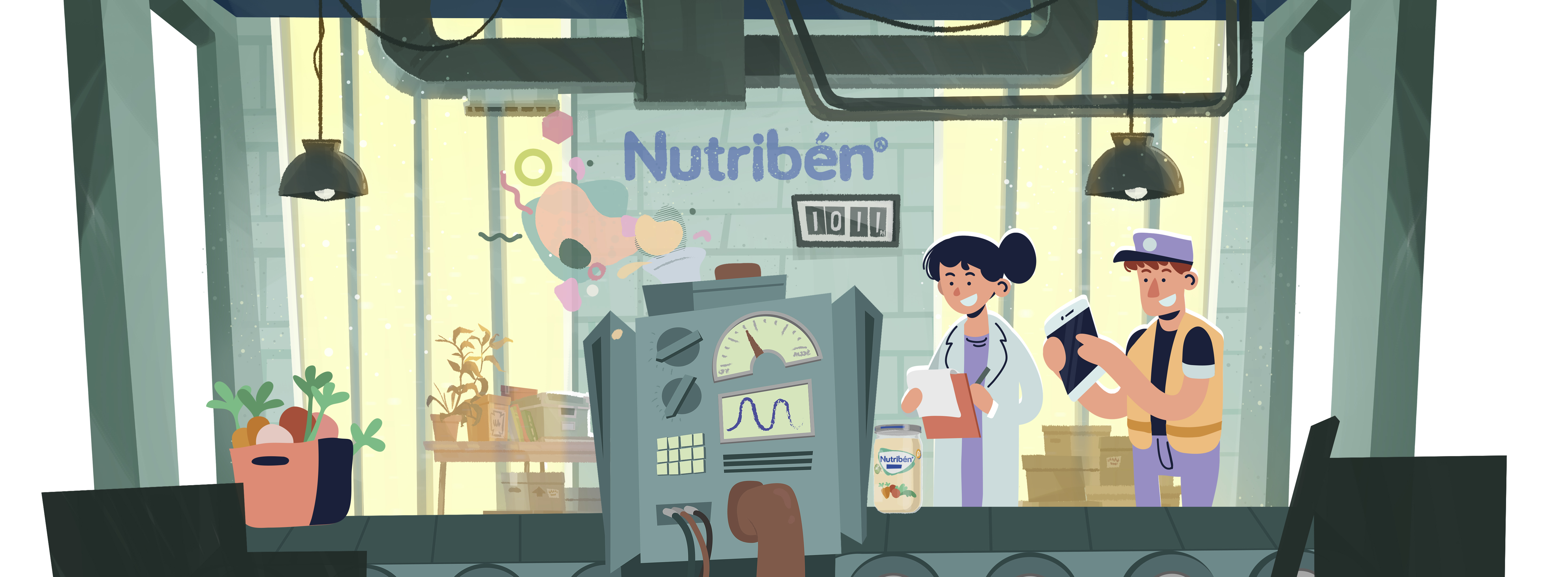 Visual development, diseño de fondos y diseño de personajes para un spot de 20'' de la conocida compañía especializada en alimentación infantil Nutribén. El objetivo era mostrar todo el trabajo y los ingredientes de calidad que se encuentran dentro de cada uno de sus productos.